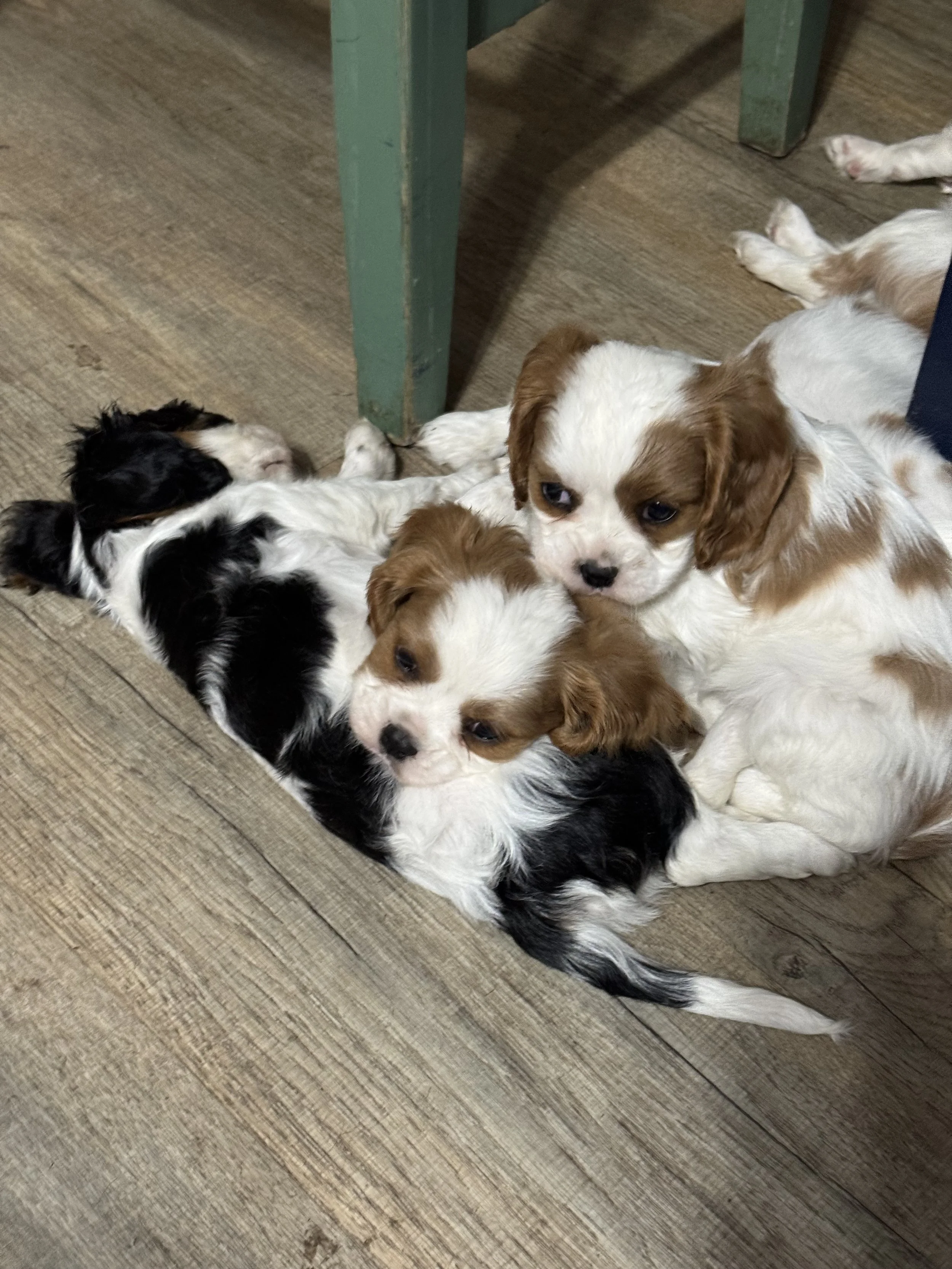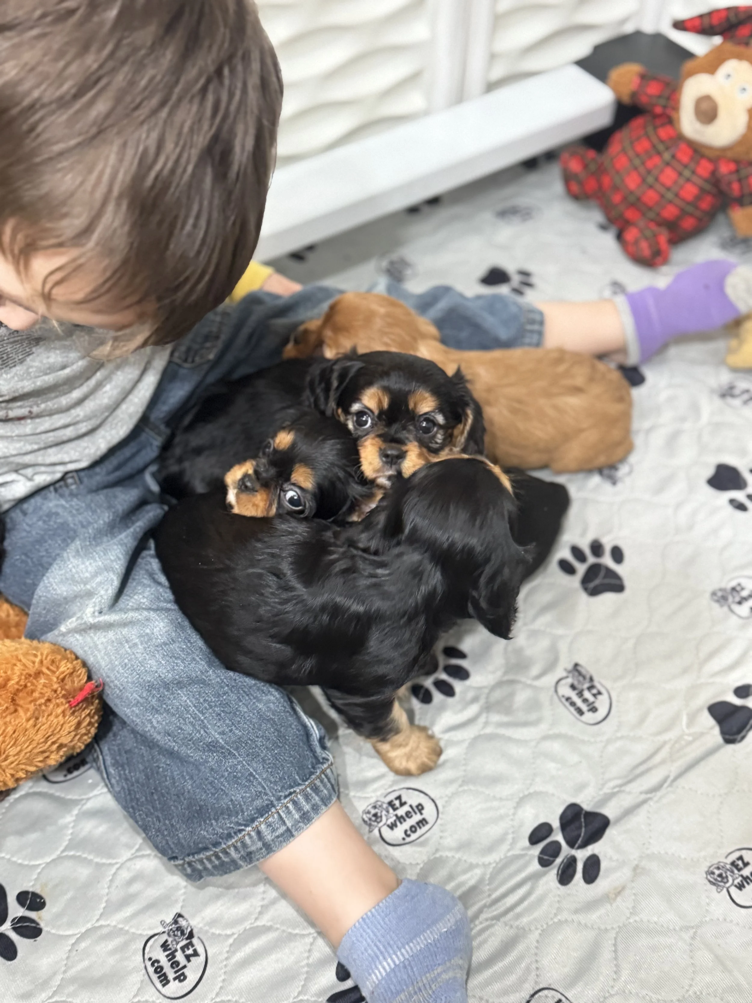 Cavalier puppies are about the size of a large newborn kitten at birth.